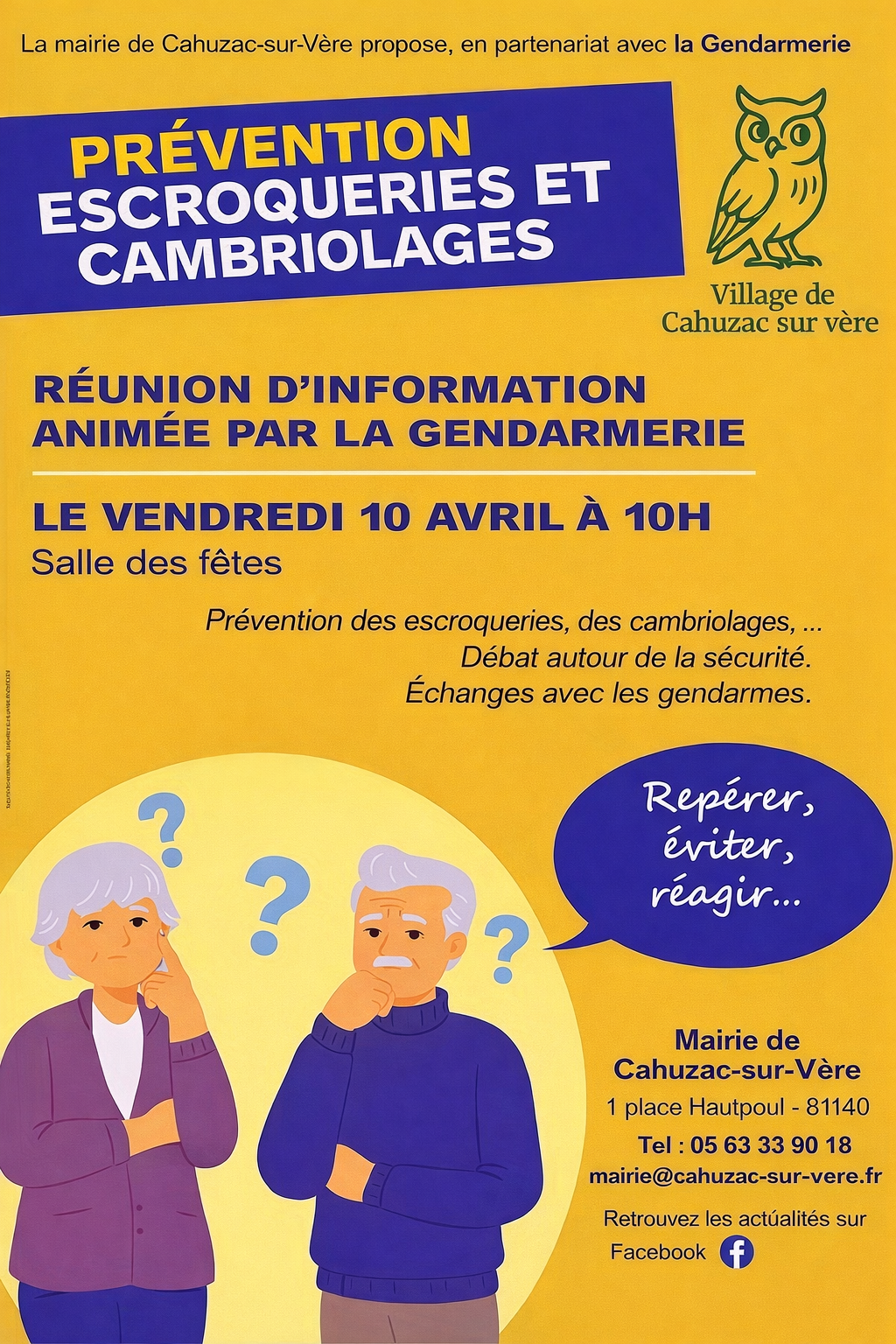 Cette rencontre, animée par la Gendarmerie, sera l’occasion d’échanger autour des questions de sécurité, de mieux comprendre les risques actuels et d’adopter les bons réflexes au quotidien.