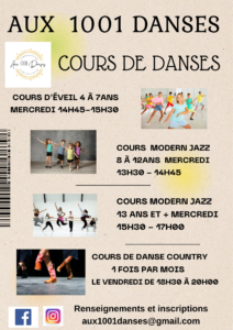 Vous y trouverez des cours de danse Street’ jazz, Modern (Enfants, adultes), yoga, Sophrologie .