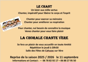 Ensemble vocal ados/adultes le mardi soir, Salle des associations.